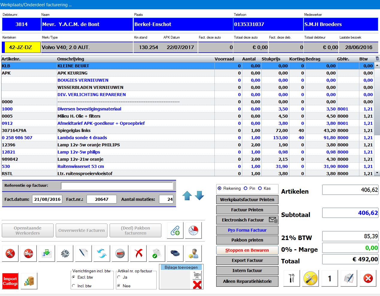 Direct een complete werkplaats- of verkoopfactuur maken zonder