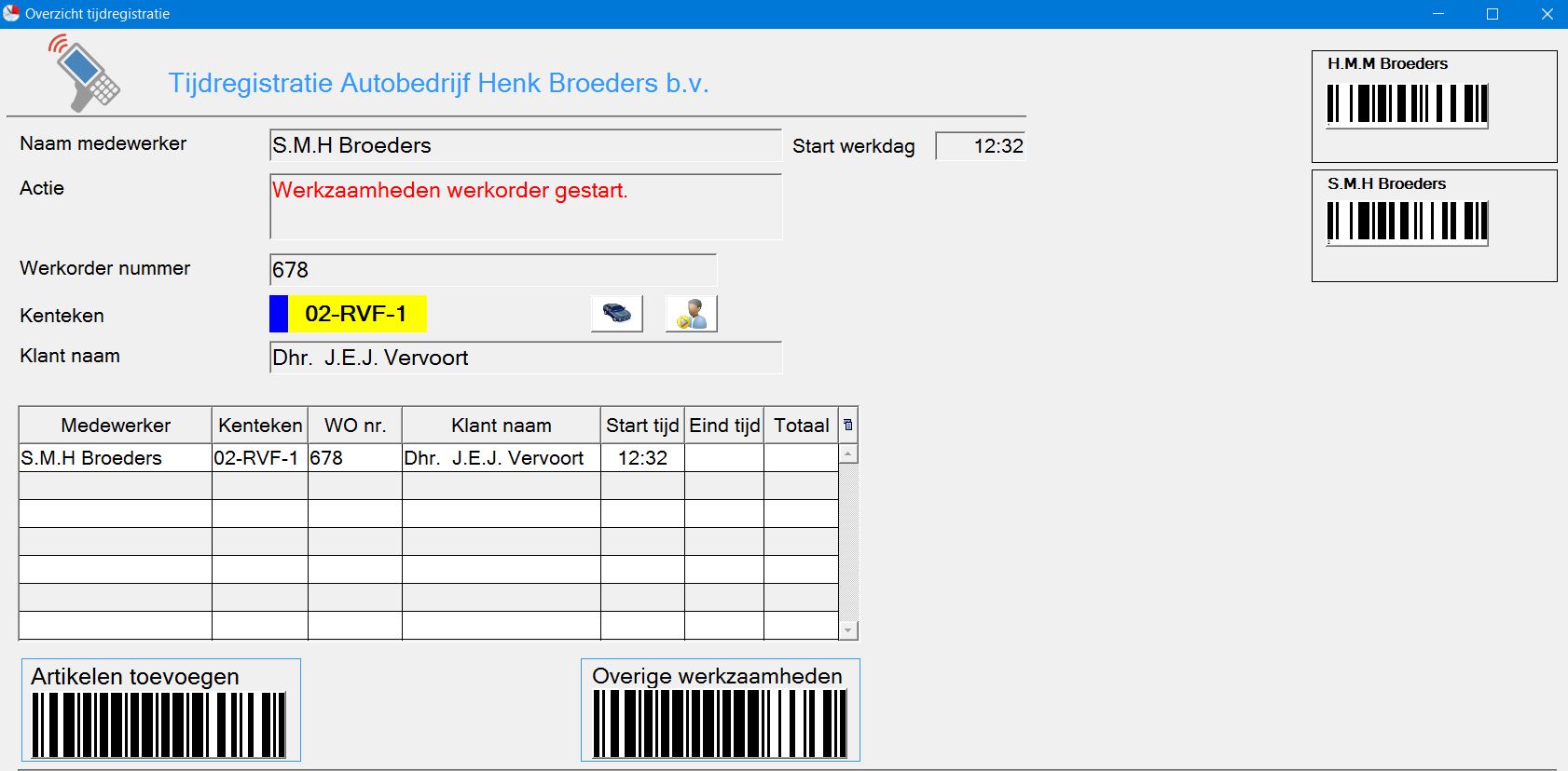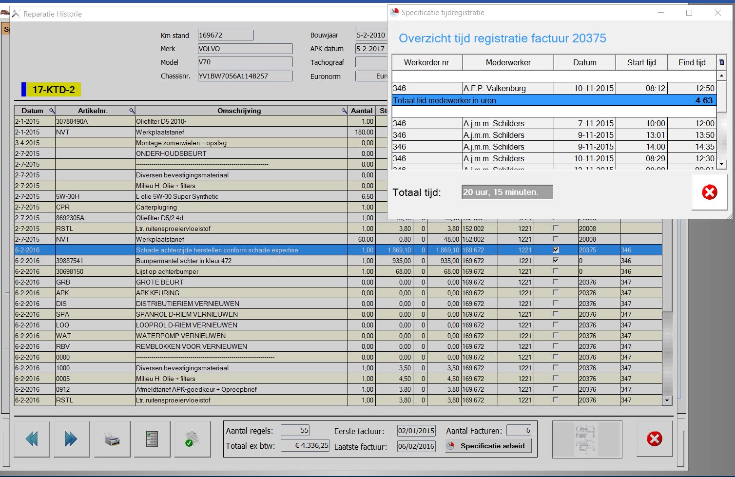 verkoop voertuigen. Werkorders,